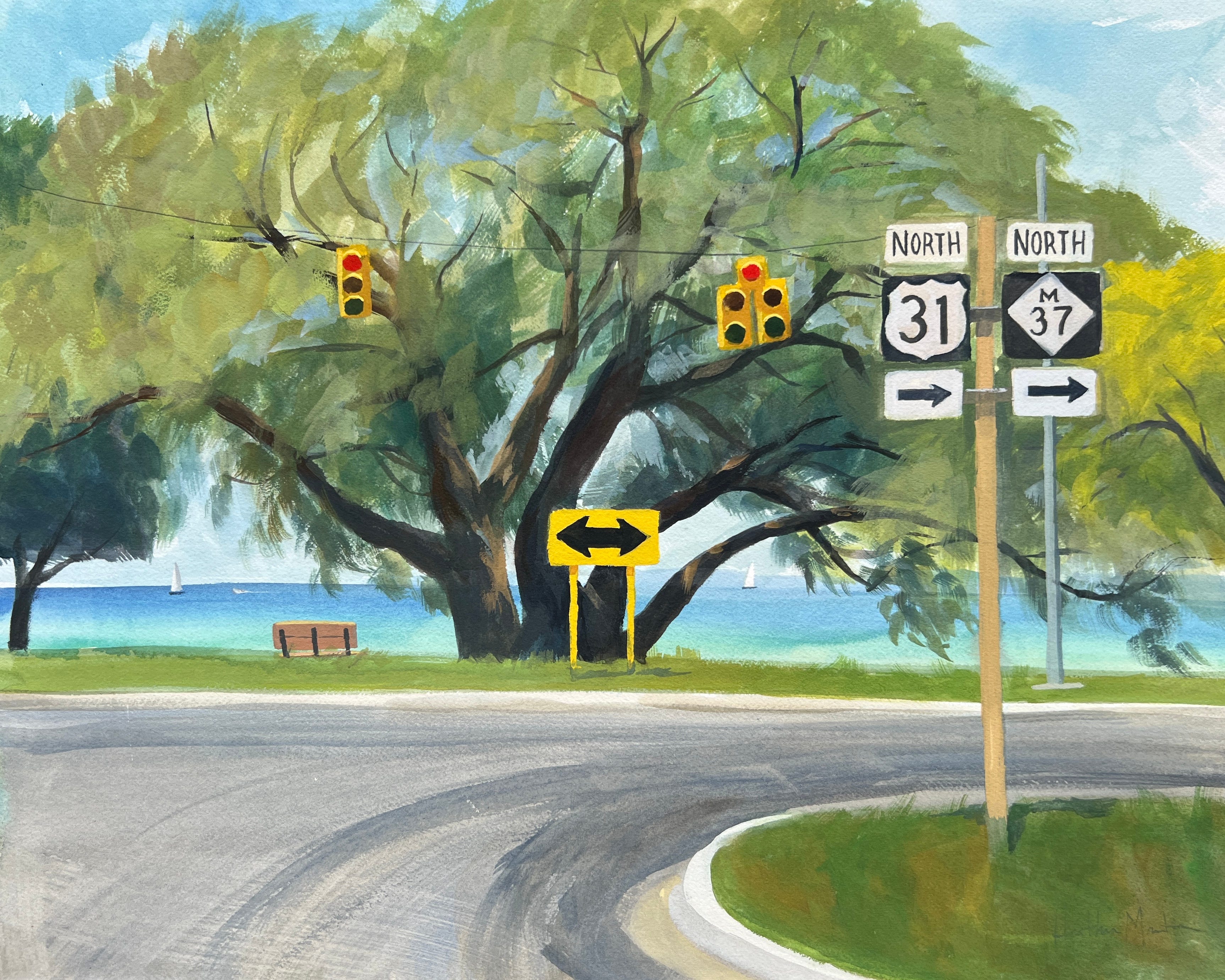 Tuesday was another day at Leelanau, but the area is so big that we ventured to the other side of the peninsula. Before that though, I did a morning painting at Clinch Park while Jon found some scenic running trails.