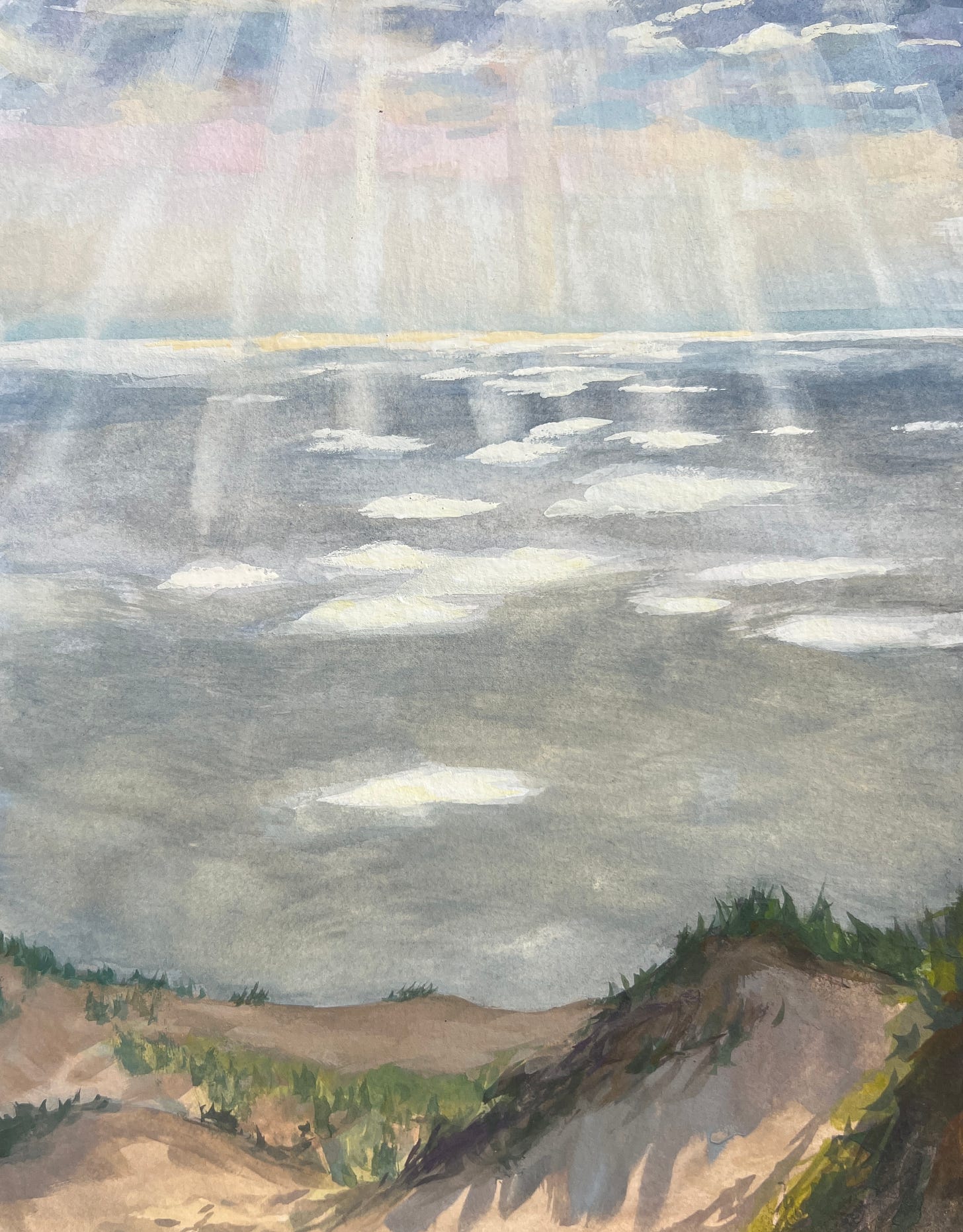 For the last painting of the day, I decided to try something extra challenging and paint the light breaking through the clouds onto the water. It was frustrating and the whole time I just wanted to throw it off the cliff, but I persevered. Was it a success? Maybe not, but I don’t want to limit myself to what I know I can do.