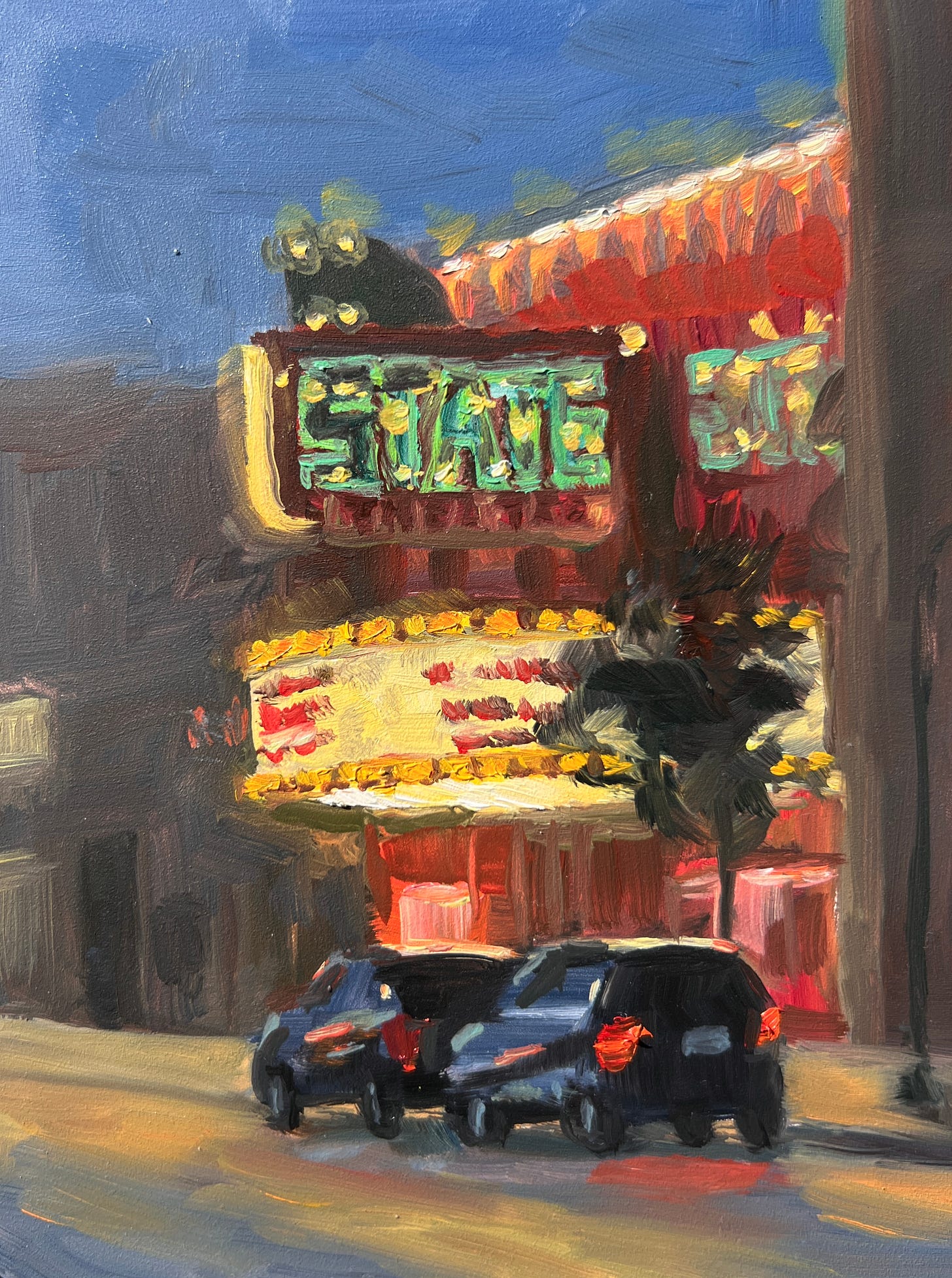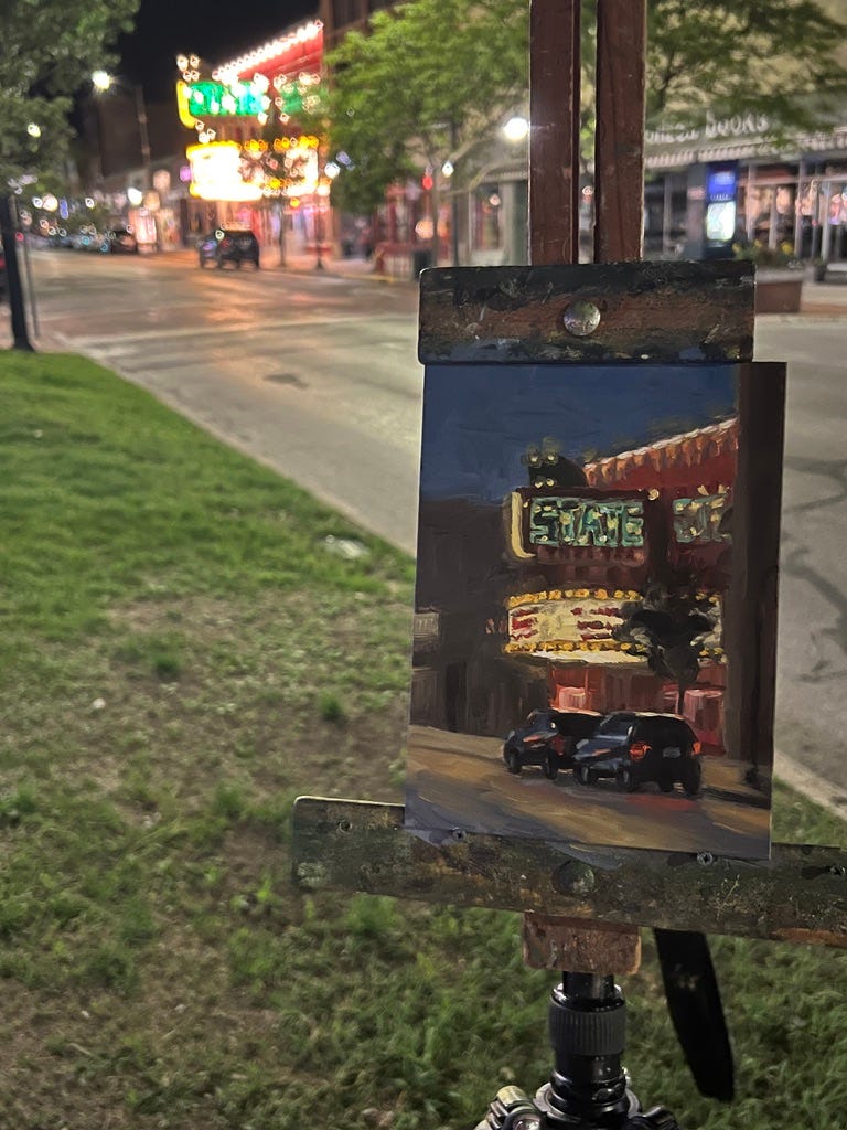 However, at the end of the night I managed to squeeze in one little 6”x8” piece of the State Theatre, an iconic building downtown Traverse City. Meanwhile, Jon roamed the nightlife.