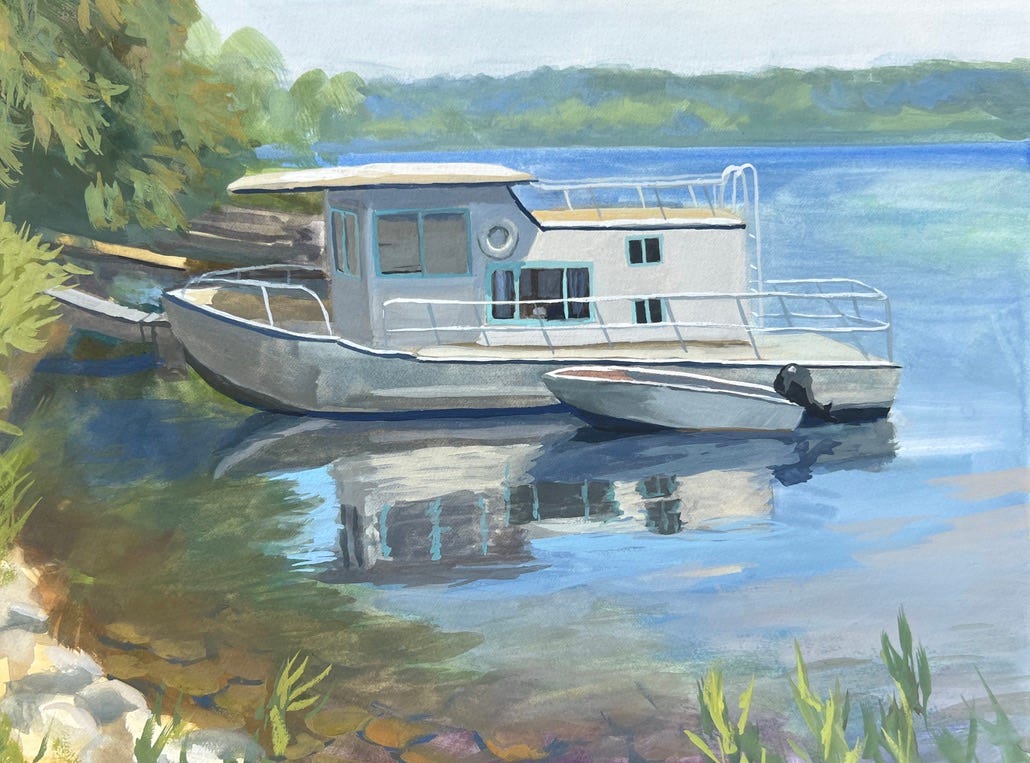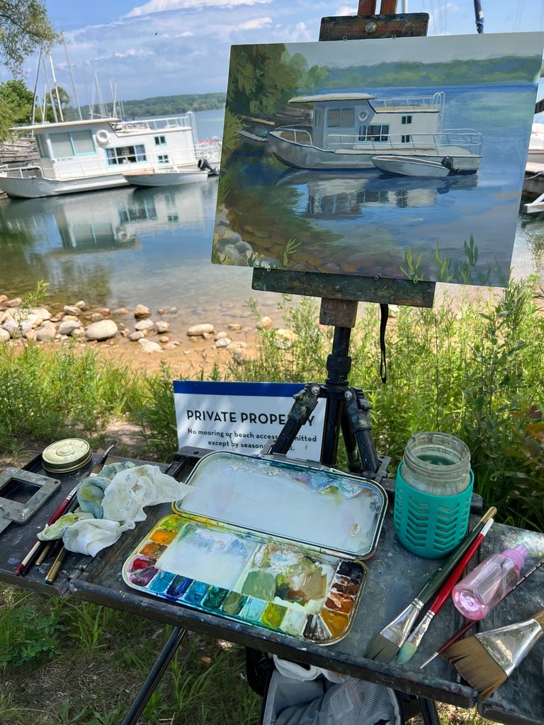 It took me a while to find a painting spot, but as soon as I saw these little boats side by side I knew they had to be painted. Don’t they seem like such good lifelong friends? I could relate to the little one that struggled and works twice as hard to keep up with the big one.
