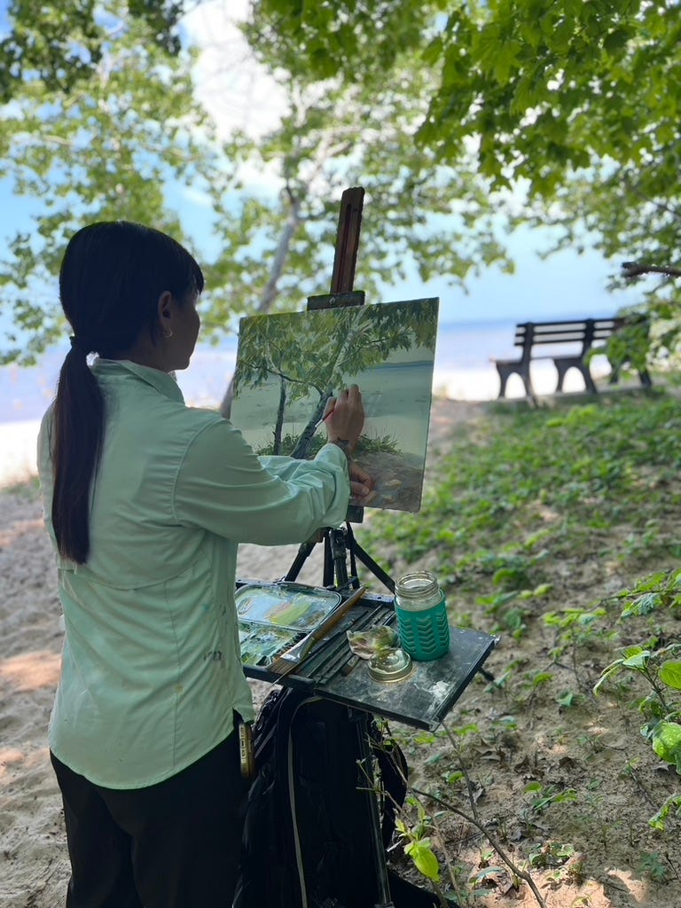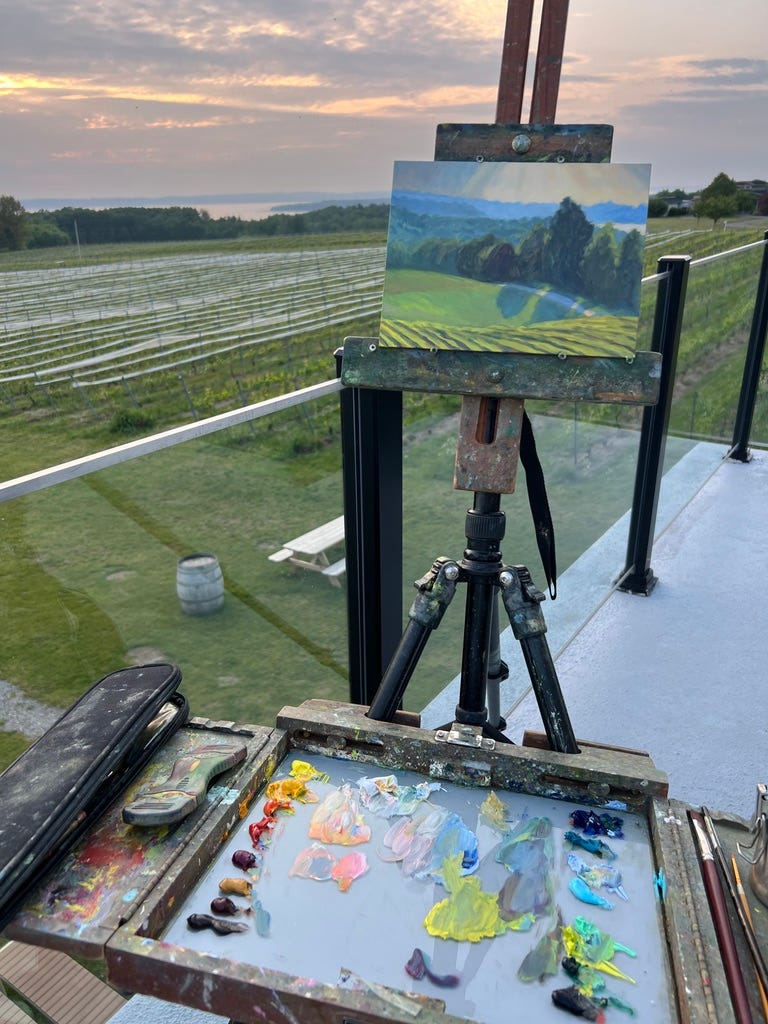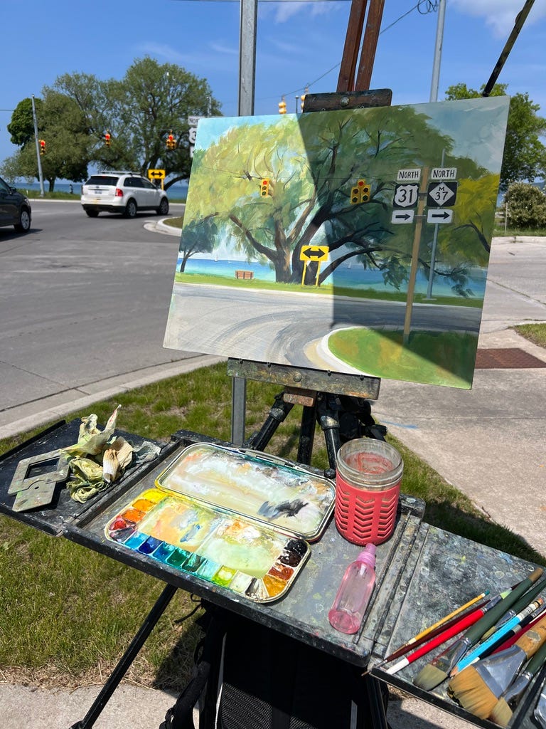 Day 3 the artists flocked to the Old Mission Peninsula. This skinny peninsula is basically just one road down the middle with water views on both sides, and has numerous wineries and quaint businesses.