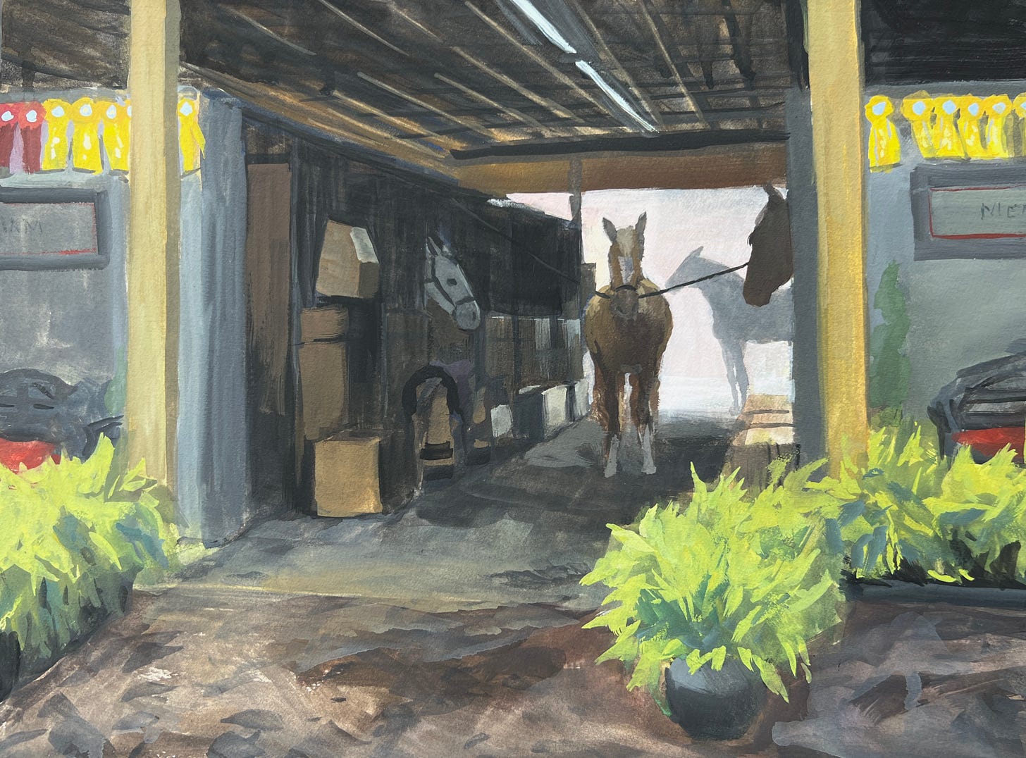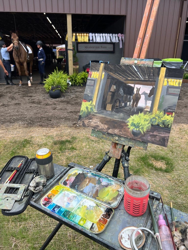 It’s not an award winning painting, but I loved painting it. The horses were moved in and out like a well oiled machine, and we all just had to go with the flow and embrace the chaos.