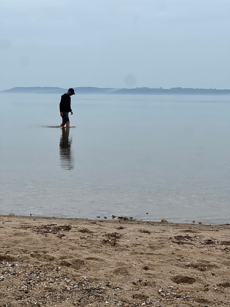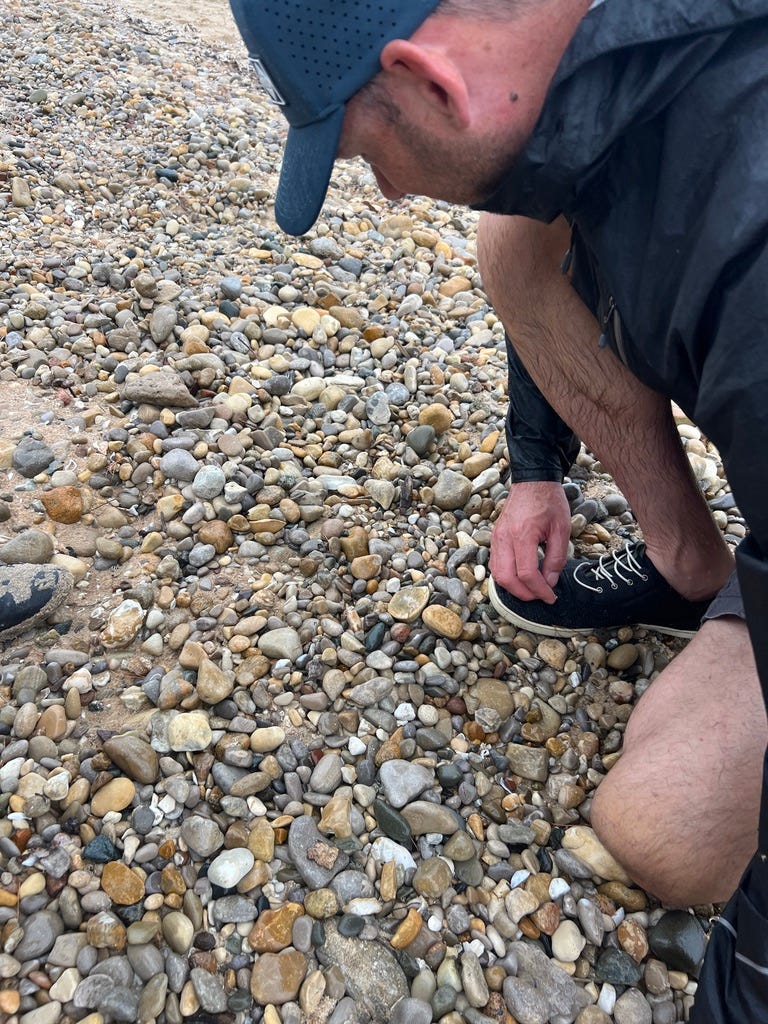 The beaches there are GREAT for rock hunting! Rock hounding is a popular sport in Michigan, and the coasts of the Traverse area have lots of Petoskey stones and other gems. The wet weather made finding them even easier. Jon found one immediately and was hooked!